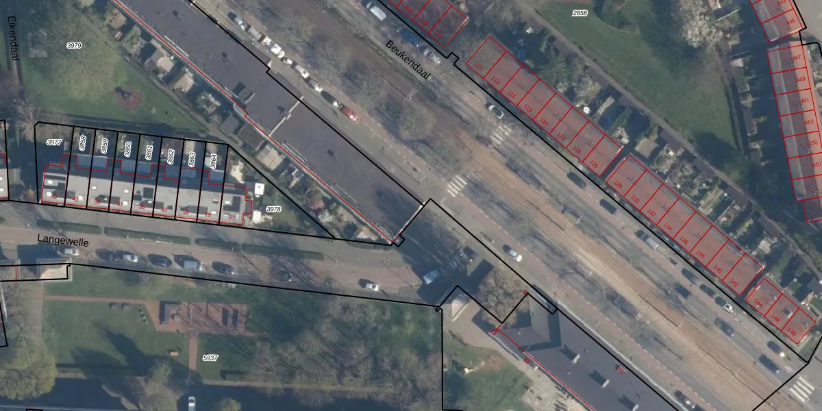 Het perceel waarop Beukendaal 163 staat heeft een oppervlakte van 5950 m². Dit is een zeer groot perceel. De perceeloppervlakte wordt geregistreerd door het Kadaster. Gedetailleerde informatie over de maten van dit perceel kunt u vinden in het rapport Kadastrale kaart met maatvoering van Beukendaal 163.