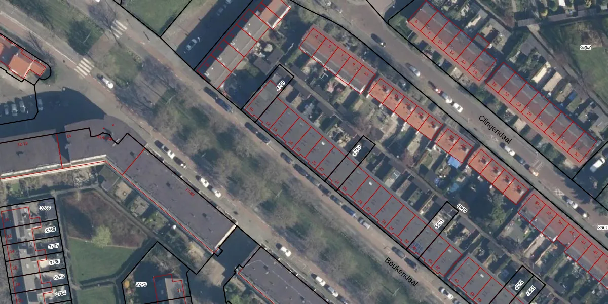 Beukendaal 18 is gelegen op kadastraal perceel RTD05V5660. Deze kadastrale aanduiding is uniek en wordt gebruikt door het Kadaster om eigendomsrechten en andere zakelijke rechten vast te leggen. Het perceel maakt onderdeel uit van de kadastrale gemeente Rotterdam.