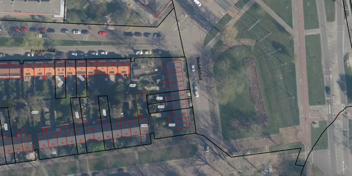 Het adres is gelegen op perceel 6087 in de sectie V en de kadastrale gemeente Rotterdam. De kadastrale aanduiding is aldus RTD05-V-6087. De gemiddelde perceeloppervlakte in de kadastrale gemeente Rotterdam is 1401,79 m². Dit perceel is met zijn 1992 m² dus groter dan gemiddeld. Het kleinste perceel in de kadastrale gemeente is 0 m² groot. De grootste perceeloppervlakte is 36,8 ha. Op het perceel liggen in totaal 12 adressen. De huidige grenzen van het perceel zijn digitaal in de Basisregistratie Kadaster (BRK) geregistreerd op 20-01-2026.