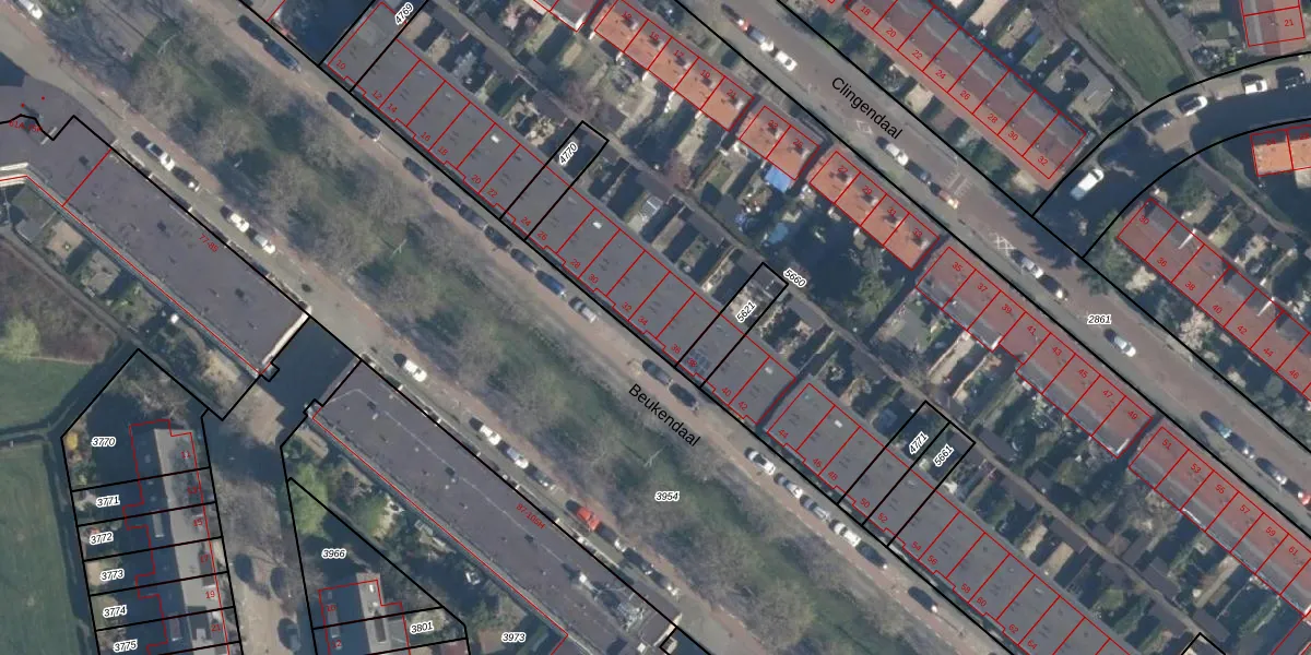 Beukendaal 34 is gelegen op kadastraal perceel RTD05V5660. Deze kadastrale aanduiding is uniek en wordt gebruikt door het Kadaster om eigendomsrechten en andere zakelijke rechten vast te leggen. Het perceel maakt onderdeel uit van de kadastrale gemeente Rotterdam.