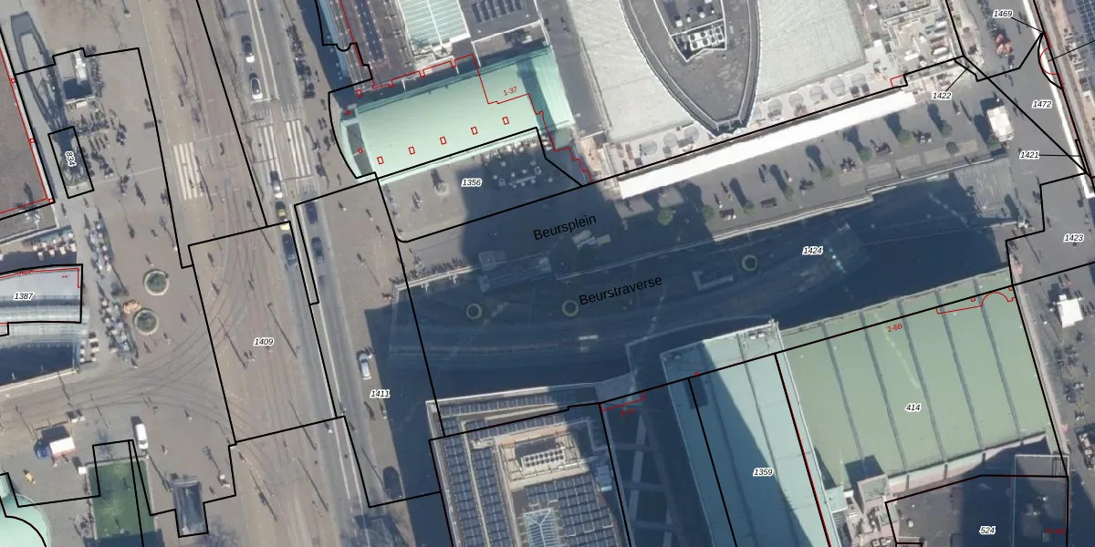 Beurstraverse 41 is gelegen op kadastraal perceel RTD04AF1424. Deze kadastrale aanduiding is uniek en wordt gebruikt door het Kadaster om eigendomsrechten en andere zakelijke rechten vast te leggen. Het perceel maakt onderdeel uit van de kadastrale gemeente Rotterdam.