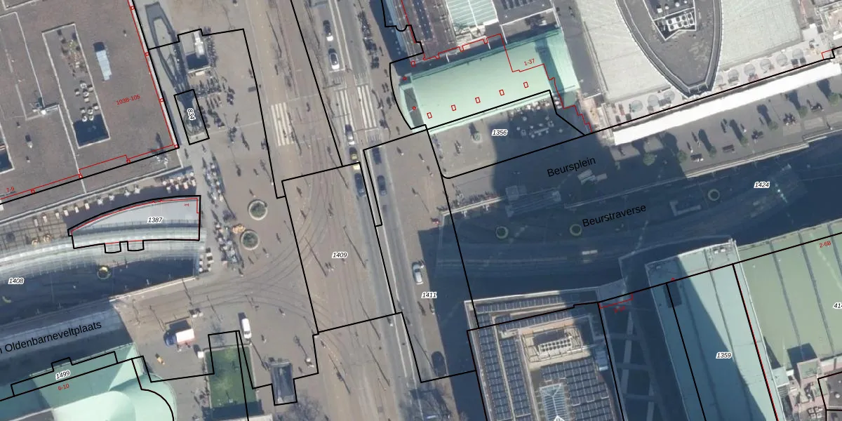 Beurstraverse 57 is gelegen op kadastraal perceel RTD04AF1411. Deze kadastrale aanduiding is uniek en wordt gebruikt door het Kadaster om eigendomsrechten en andere zakelijke rechten vast te leggen. Het perceel maakt onderdeel uit van de kadastrale gemeente Rotterdam.
