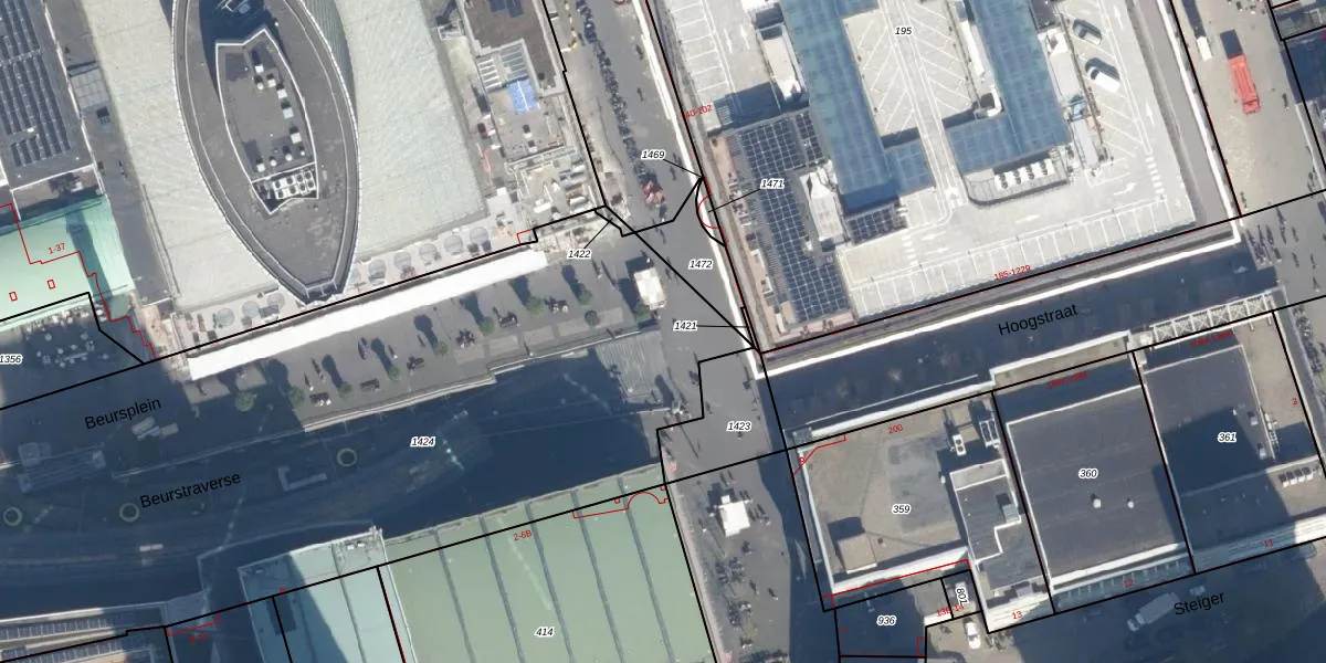 Beurstraverse 8 is gelegen op kadastraal perceel RTD04AF1424. Deze kadastrale aanduiding is uniek en wordt gebruikt door het Kadaster om eigendomsrechten en andere zakelijke rechten vast te leggen. Het perceel maakt onderdeel uit van de kadastrale gemeente Rotterdam.