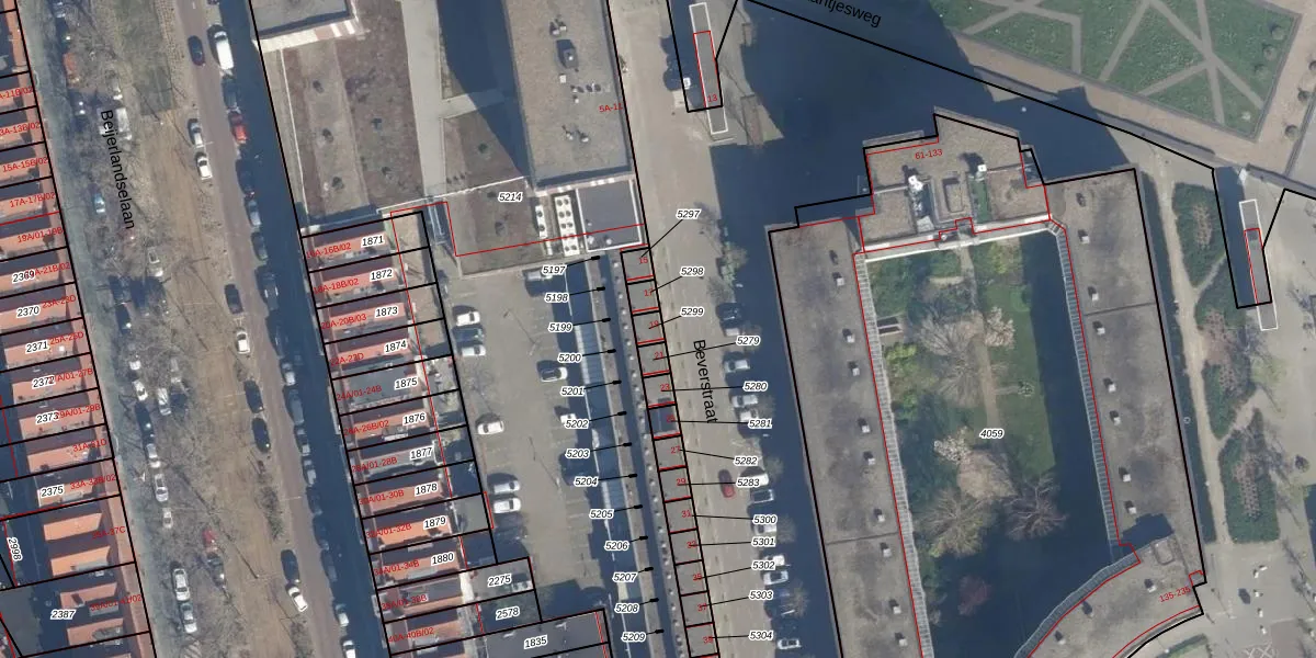 Beverstraat 19 is gelegen op kadastraal perceel RTD05V5299. Deze kadastrale aanduiding is uniek en wordt gebruikt door het Kadaster om eigendomsrechten en andere zakelijke rechten vast te leggen. Het perceel maakt onderdeel uit van de kadastrale gemeente Rotterdam.