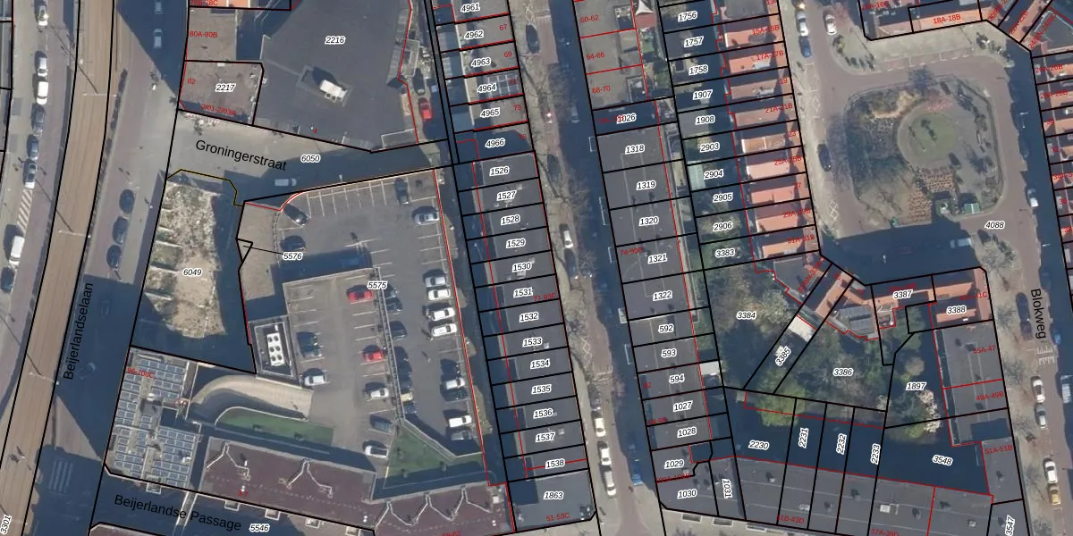 Het adres is gelegen op perceel 1530 in de sectie V en de kadastrale gemeente Rotterdam. De kadastrale aanduiding is aldus RTD05-V-1530. De gemiddelde perceelgrootte in Rotterdam is 1402,06 m². Dit perceel is kleiner: de perceeloppervlakte bedraagt 71 m². Het grootste perceel in de kadastrale gemeente is 36,8 ha. Het kleinste perceel heeft een oppervlakte van 0 m². Op het perceel zijn 6 adressen aanwezig. De laatste wijziging in het de Basisregistratie Kadaster (BRK) was op 18-04-2006.