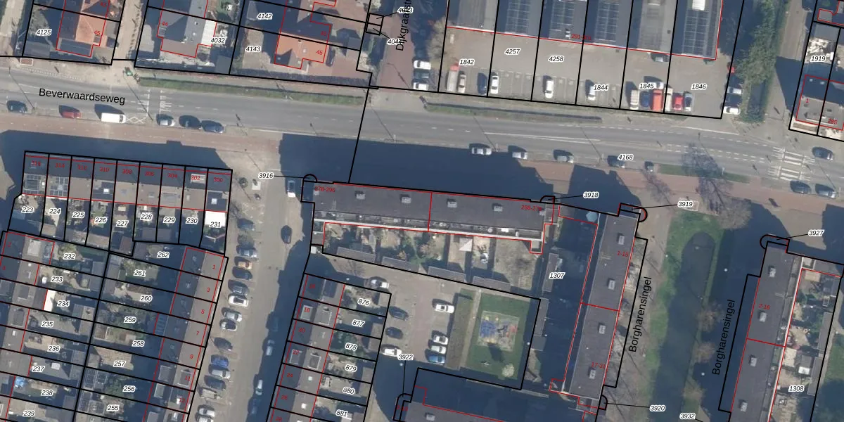 Beverwaardseweg 278 is gelegen op kadastraal perceel ISM01F1307. Deze kadastrale aanduiding is uniek en wordt gebruikt door het Kadaster om eigendomsrechten en andere zakelijke rechten vast te leggen. Het perceel maakt onderdeel uit van de kadastrale gemeente IJsselmonde.
