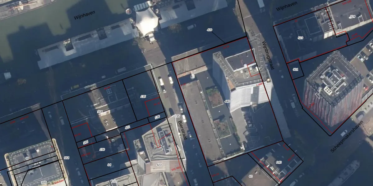 Het perceel waarop het adres ligt is RTD04-AH-440. De afkorting 'RTD04' staat voor kadastrale gemeente Rotterdam. De gemiddelde perceeloppervlakte in de kadastrale gemeente Rotterdam is 1240,47 m². Dit perceel is met zijn 2560 m² dus groter dan gemiddeld. Het kleinste perceel in de kadastrale gemeente is 0 m² groot. De grootste perceeloppervlakte is 17,3 ha. Op het perceel zijn 221 adressen aanwezig. In de Basisregistratie Kadaster (BRK) werden de grenzen van het perceel geregistreerd op 09-11-2010.