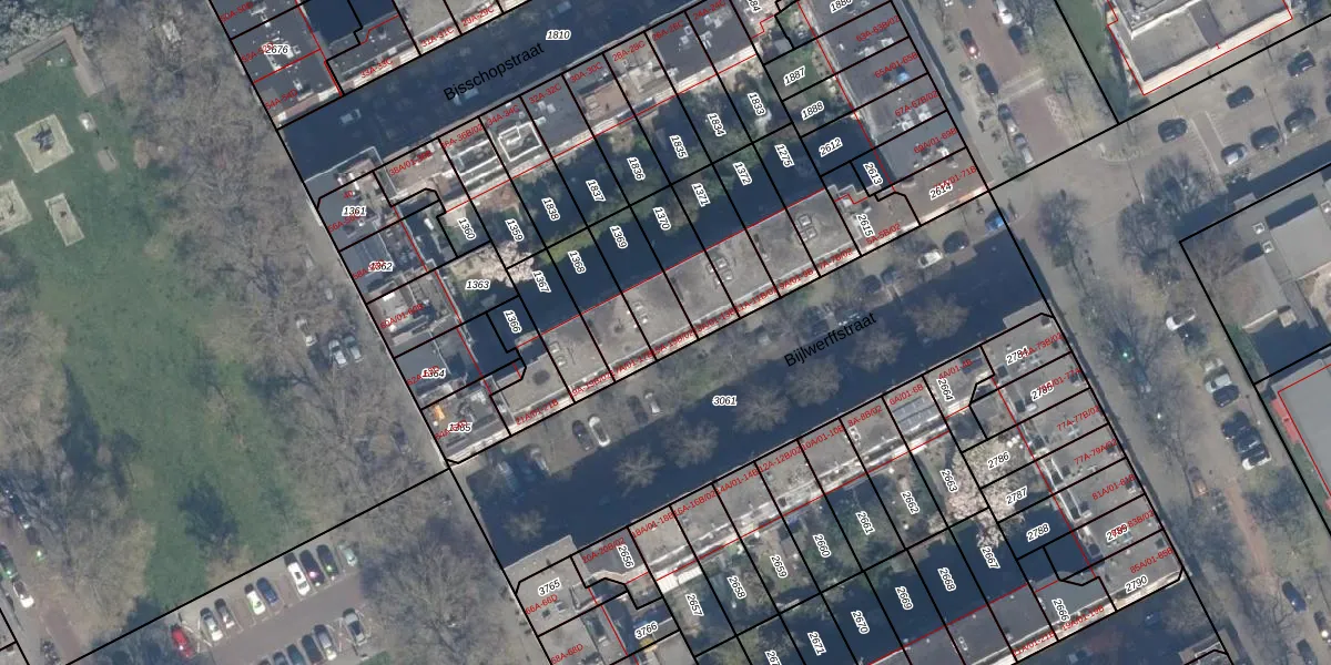 Bijlwerffstraat 15-B-02 is gelegen op kadastraal perceel RTD10AB1369. Deze kadastrale aanduiding is uniek en wordt gebruikt door het Kadaster om eigendomsrechten en andere zakelijke rechten vast te leggen. Het perceel maakt onderdeel uit van de kadastrale gemeente Rotterdam.