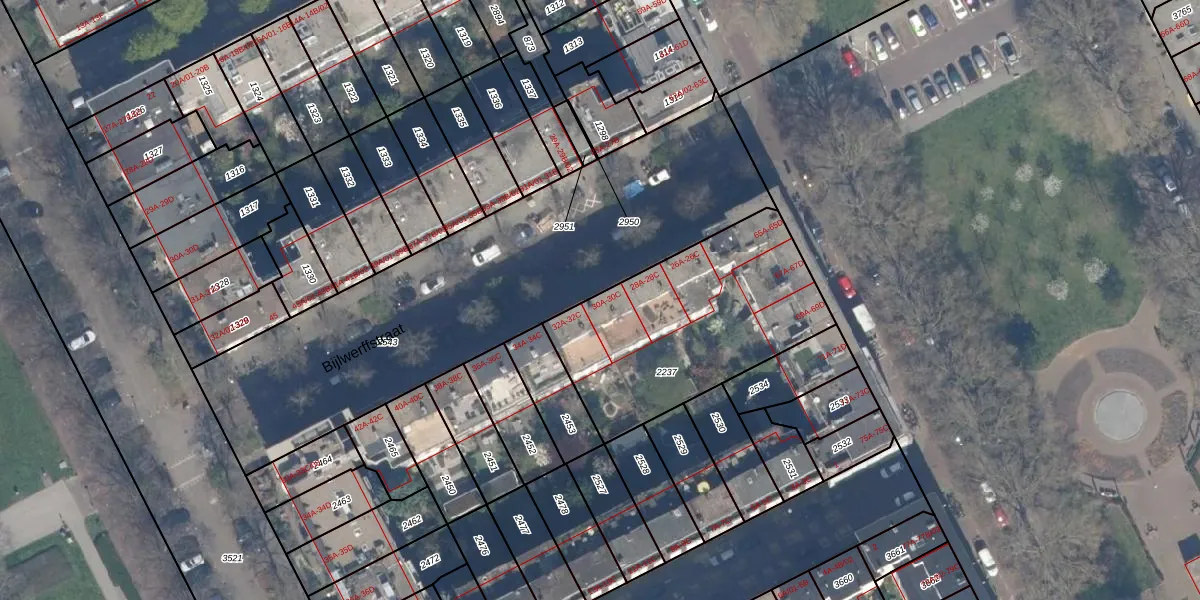 Het perceel waarop Bijlwerffstraat 30-B staat heeft een oppervlakte van 973 m². Dit is een groot perceel. De perceeloppervlakte wordt geregistreerd door het Kadaster. Gedetailleerde informatie over de maten van dit perceel kunt u vinden in het rapport Kadastrale kaart met maatvoering van Bijlwerffstraat 30-B.