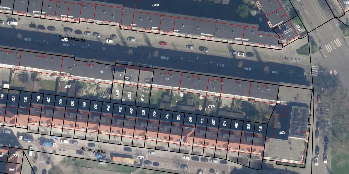 Het perceel waarop Bilderdijkstraat 118 staat heeft een oppervlakte van 1636 m². Dit is een zeer groot perceel. De perceeloppervlakte wordt geregistreerd door het Kadaster. Gedetailleerde informatie over de maten van dit perceel kunt u vinden in het rapport Kadastrale kaart met maatvoering van Bilderdijkstraat 118.