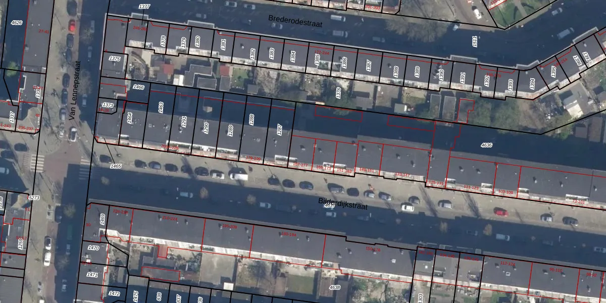 Het perceel waarop Bilderdijkstraat 167 staat heeft een oppervlakte van 4355 m². Dit is een zeer groot perceel. De perceeloppervlakte wordt geregistreerd door het Kadaster. Gedetailleerde informatie over de maten van dit perceel kunt u vinden in het rapport Kadastrale kaart met maatvoering van Bilderdijkstraat 167.
