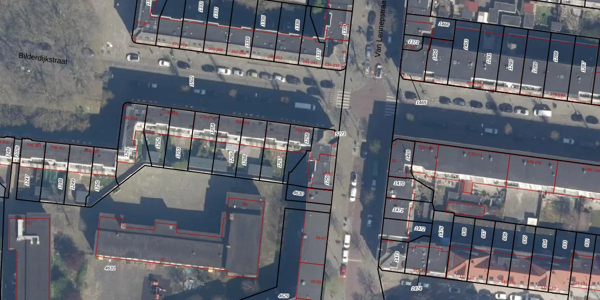 Het perceel waarop Bilderdijkstraat 242 staat heeft een oppervlakte van 106 m². Dit is een middelgroot perceel. De perceeloppervlakte wordt geregistreerd door het Kadaster. Gedetailleerde informatie over de maten van dit perceel kunt u vinden in het rapport Kadastrale kaart met maatvoering van Bilderdijkstraat 242.
