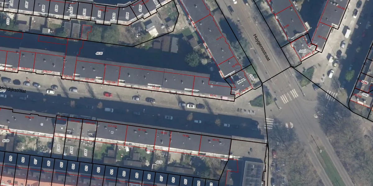 Het adres is gelegen op perceel 4636 in de sectie Z en de kadastrale gemeente Rotterdam. De kadastrale aanduiding is aldus RTD10-Z-4636. De oppervlakte van het perceel is 4355 m². Dat is groter dan gemiddeld in Rotterdam, waar de gemiddelde perceeloppervlakte op 1602,8 m² ligt. Het grootste perceel in de kadastrale gemeente is 30,3 ha. Het kleinste perceel heeft een oppervlakte van 0 m². Op het perceel zijn 83 adressen aanwezig. In de Basisregistratie Kadaster (BRK) werden de grenzen van het perceel geregistreerd op 10-11-2004.