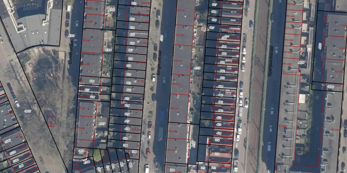 Bingleystraat 122 is gelegen op kadastraal perceel DHV00H4713. Deze kadastrale aanduiding is uniek en wordt gebruikt door het Kadaster om eigendomsrechten en andere zakelijke rechten vast te leggen. Het perceel maakt onderdeel uit van de kadastrale gemeente Delfshaven.