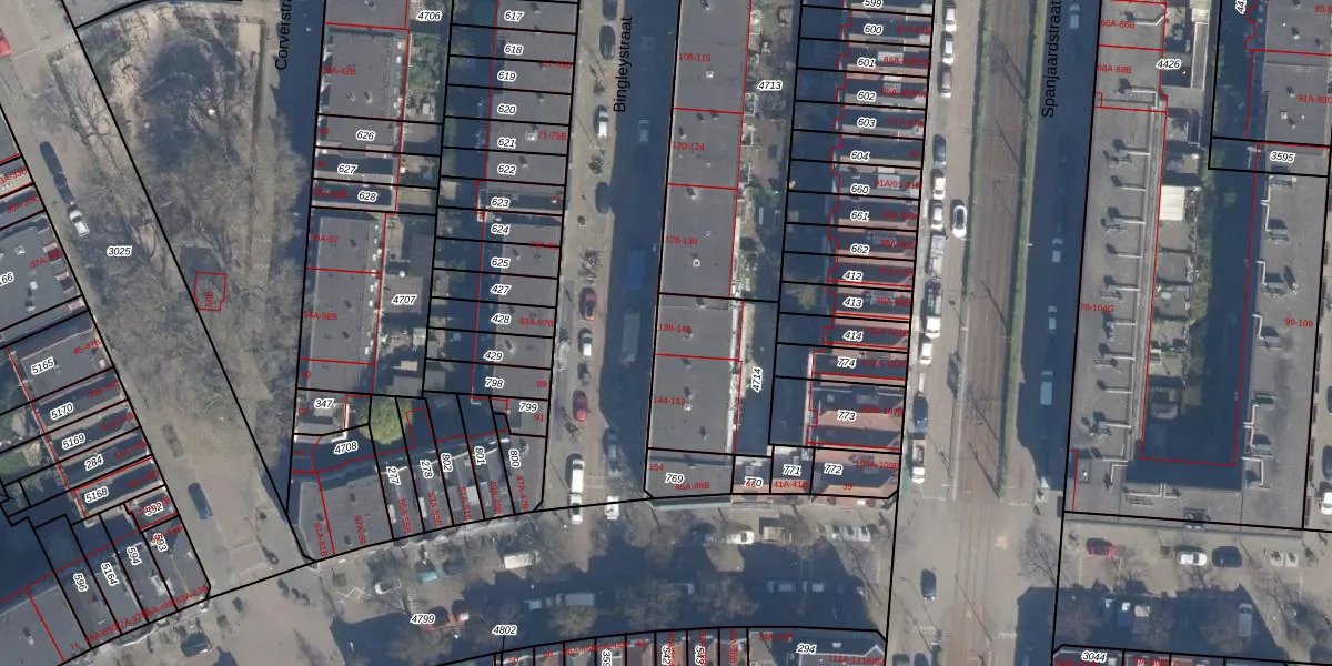 Bingleystraat 140 is gelegen op kadastraal perceel DHV00H4714. Deze kadastrale aanduiding is uniek en wordt gebruikt door het Kadaster om eigendomsrechten en andere zakelijke rechten vast te leggen. Het perceel maakt onderdeel uit van de kadastrale gemeente Delfshaven.