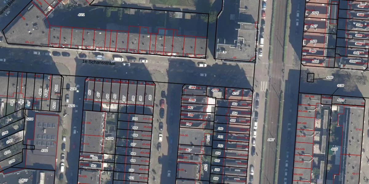 Het adres is gelegen op perceel 1204 in de sectie H en de kadastrale gemeente Delfshaven. De kadastrale aanduiding is aldus DHV00-H-1204. Het perceel is 67 m² groot. Dat is kleiner dan de gemiddelde perceeloppervlakte in Delfshaven, dat op 628,61 m² ligt. Het grootste perceel in de kadastrale gemeente is 22,2 ha. Het kleinste perceel heeft een oppervlakte van 0 m². Op het perceel liggen in totaal 4 adressen. De huidige grenzen van het perceel zijn digitaal in de Basisregistratie Kadaster (BRK) geregistreerd op 03-07-2006.