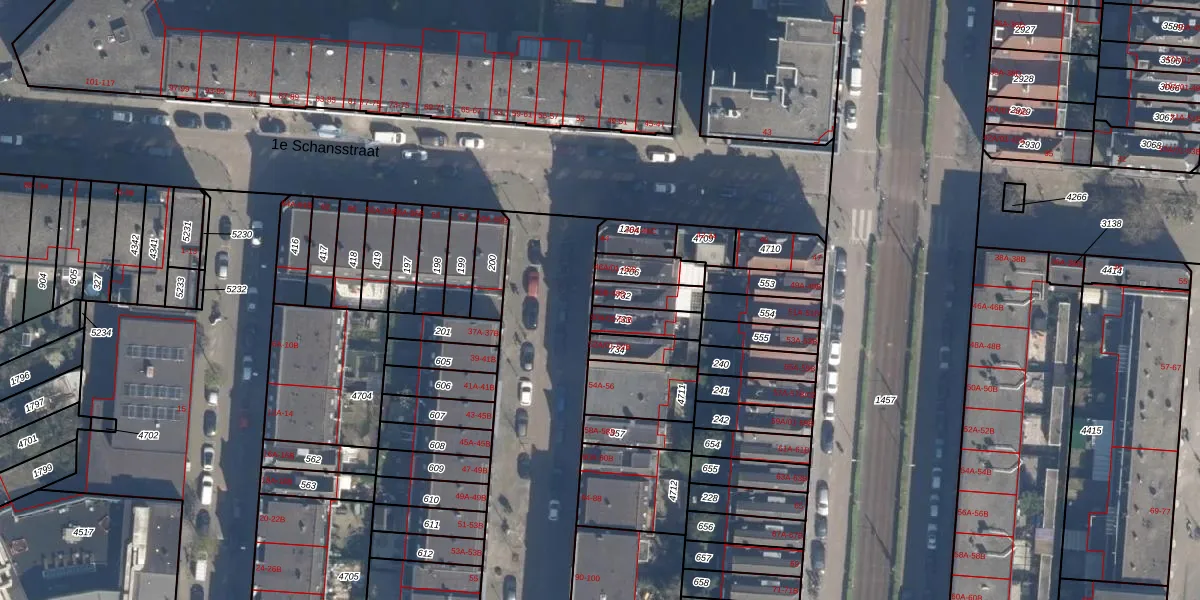 Het adres is gelegen op perceel 732 in de sectie H en de kadastrale gemeente Delfshaven. De kadastrale aanduiding is aldus DHV00-H-732. Het perceel is 82 m² groot. Dat is kleiner dan de gemiddelde perceeloppervlakte in Delfshaven, dat op 628,82 m² ligt. Het grootste perceel in de kadastrale gemeente is 22,2 ha. Het kleinste perceel heeft een oppervlakte van 0 m². Er zijn 4 adressen aanwezig op het perceel. De huidige grenzen van het perceel zijn digitaal in de Basisregistratie Kadaster (BRK) geregistreerd op 13-03-2003.