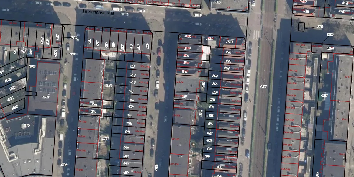 Het adres is gelegen op perceel 4711 in de sectie H en de kadastrale gemeente Delfshaven. De kadastrale aanduiding is aldus DHV00-H-4711. Het perceel is 166 m² groot. Dat is kleiner dan de gemiddelde perceeloppervlakte in Delfshaven, dat op 628,61 m² ligt. Het grootste perceel in de kadastrale gemeente is 22,2 ha. Het kleinste perceel heeft een oppervlakte van 0 m². Op het perceel zijn 4 adressen aanwezig. De laatste wijziging in het de Basisregistratie Kadaster (BRK) was op 13-03-2003.