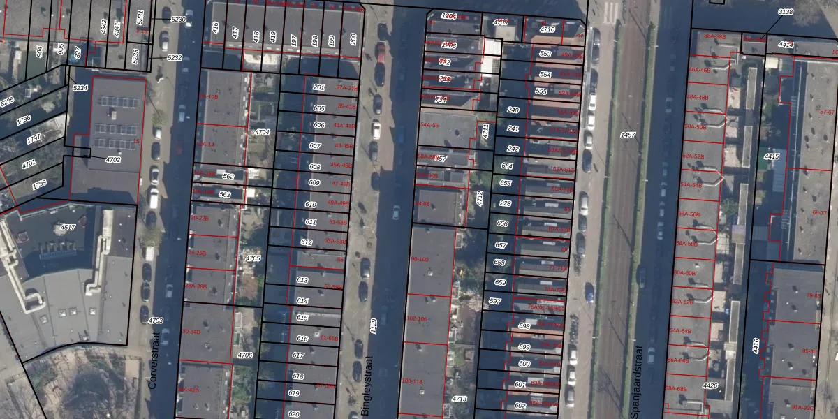 Bingleystraat 84 is gelegen op kadastraal perceel DHV00H4712. Deze kadastrale aanduiding is uniek en wordt gebruikt door het Kadaster om eigendomsrechten en andere zakelijke rechten vast te leggen. Het perceel maakt onderdeel uit van de kadastrale gemeente Delfshaven.