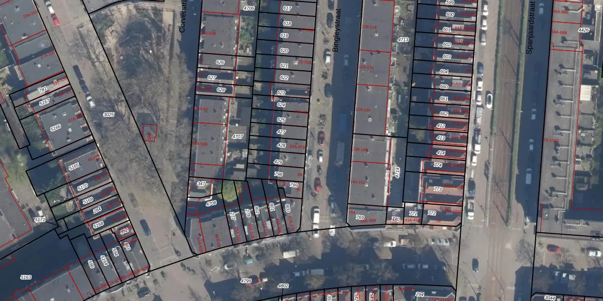 Bingleystraat 85 is gelegen op kadastraal perceel DHV00H428. Deze kadastrale aanduiding is uniek en wordt gebruikt door het Kadaster om eigendomsrechten en andere zakelijke rechten vast te leggen. Het perceel maakt onderdeel uit van de kadastrale gemeente Delfshaven.