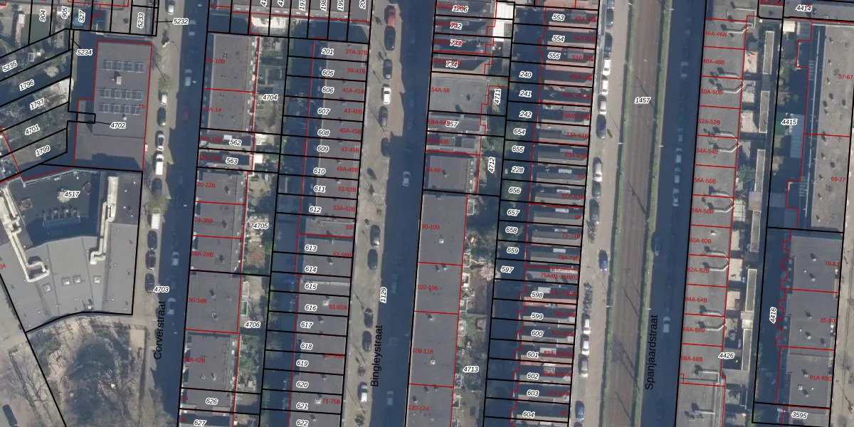 Bingleystraat 90 is gelegen op kadastraal perceel DHV00H4713. Deze kadastrale aanduiding is uniek en wordt gebruikt door het Kadaster om eigendomsrechten en andere zakelijke rechten vast te leggen. Het perceel maakt onderdeel uit van de kadastrale gemeente Delfshaven.