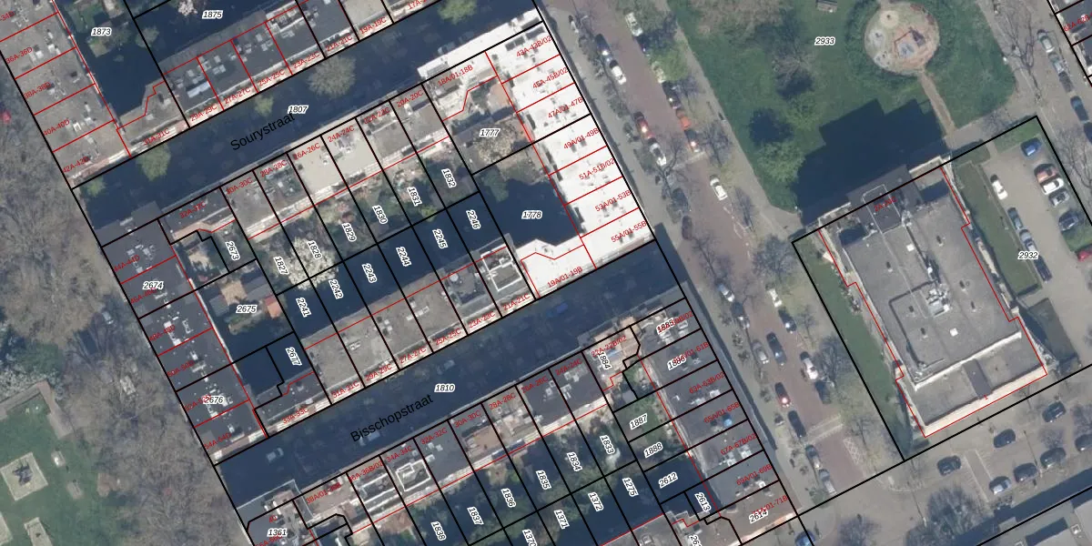 Het perceel waarop Bisschopstraat 19-B staat heeft een oppervlakte van 630 m². Dit is een groot perceel. De perceeloppervlakte wordt geregistreerd door het Kadaster. Gedetailleerde informatie over de maten van dit perceel kunt u vinden in het rapport Kadastrale kaart met maatvoering van Bisschopstraat 19-B.