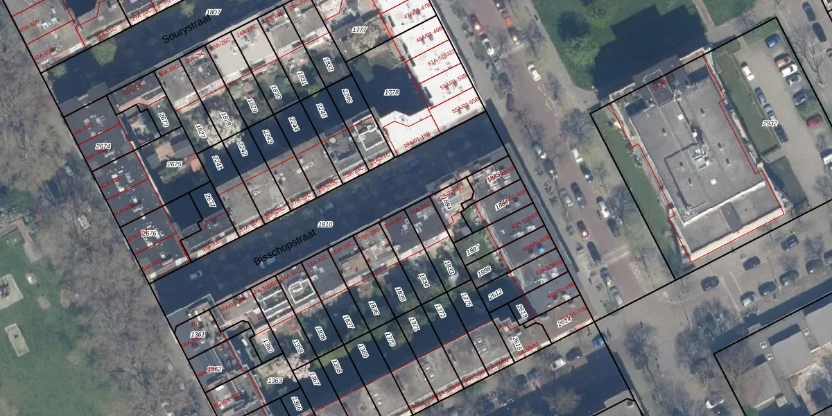 Bisschopstraat 24-A is gelegen op kadastraal perceel RTD10AB1833. Deze kadastrale aanduiding is uniek en wordt gebruikt door het Kadaster om eigendomsrechten en andere zakelijke rechten vast te leggen. Het perceel maakt onderdeel uit van de kadastrale gemeente Rotterdam.
