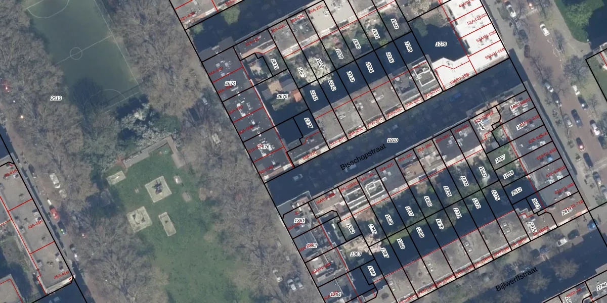 Bisschopstraat 33-B is gelegen op kadastraal perceel RTD10AB2677. Deze kadastrale aanduiding is uniek en wordt gebruikt door het Kadaster om eigendomsrechten en andere zakelijke rechten vast te leggen. Het perceel maakt onderdeel uit van de kadastrale gemeente Rotterdam.