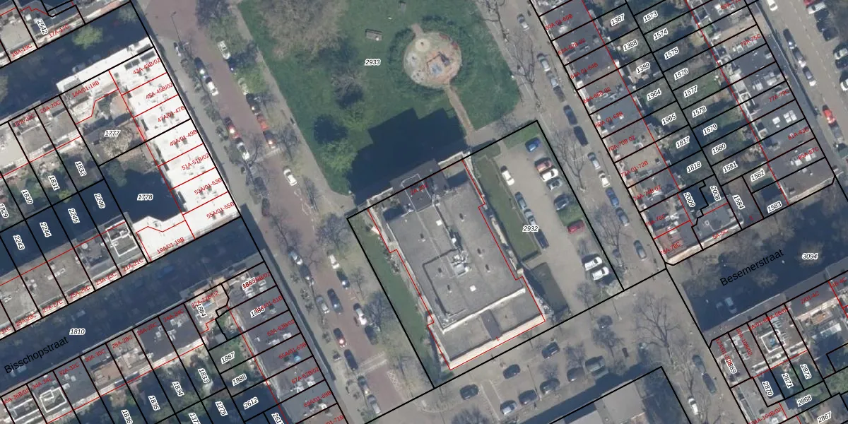 Bisschopstraat 8-E is gelegen op kadastraal perceel RTD10AB2932. Deze kadastrale aanduiding is uniek en wordt gebruikt door het Kadaster om eigendomsrechten en andere zakelijke rechten vast te leggen. Het perceel maakt onderdeel uit van de kadastrale gemeente Rotterdam.