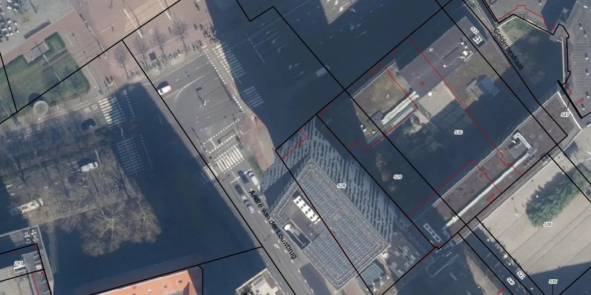 Het adres ligt op het perceel RTD04-AH-528, dat zich in de kadastrale gemeente Rotterdam bevindt. De oppervlakte van het perceel is 1360 m². Dat is groter dan gemiddeld in Rotterdam, waar de gemiddelde perceeloppervlakte op 1240,47 m² ligt. De grootste perceeloppervlakte in de kadastrale gemeente is 17,3 ha. De kleinste oppervlakte bedraagt 0 m². Op het perceel zijn 2 adressen aanwezig. In de Basisregistratie Kadaster (BRK) werden de grenzen van het perceel geregistreerd op 23-12-2013.
