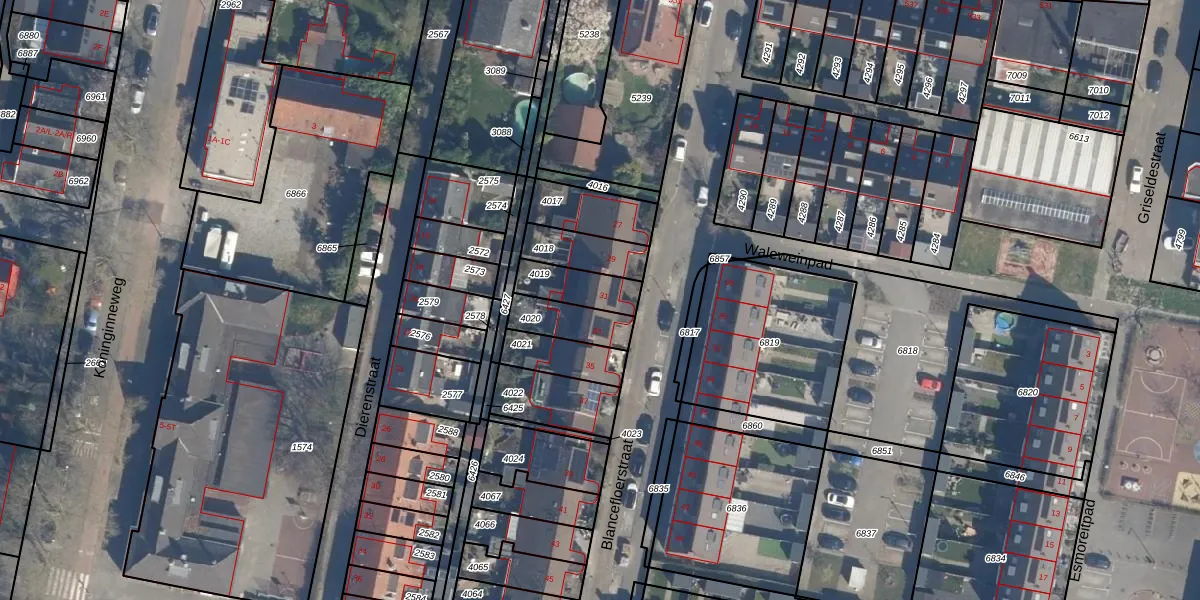 Gebruik de zoekbalk of klik op een perceel voor informatie over de adressen binnen dit perceel.