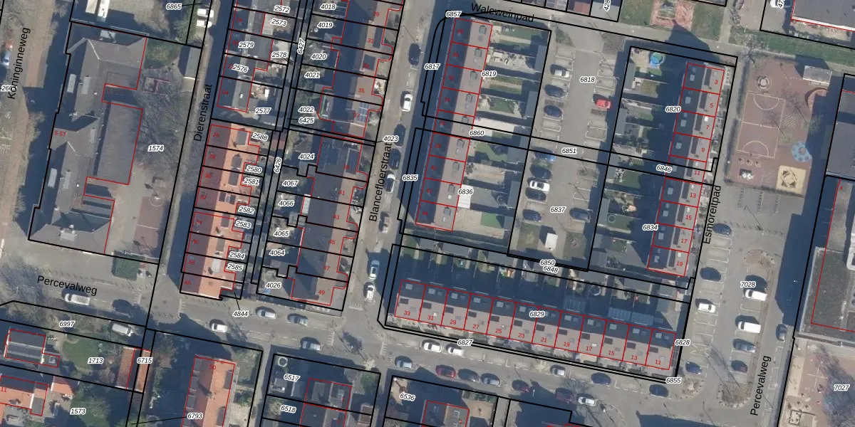 Het perceel waarop Blancefloerstraat 44 staat heeft een oppervlakte van 621 m². Dit is een groot perceel. De perceeloppervlakte wordt geregistreerd door het Kadaster. Gedetailleerde informatie over de maten van dit perceel kunt u vinden in het rapport Kadastrale kaart met maatvoering van Blancefloerstraat 44.