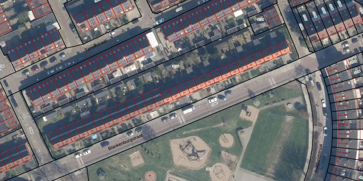 Het perceel waarop Blankenburgstraat 61 staat heeft een oppervlakte van 3789 m². Dit is een zeer groot perceel. De perceeloppervlakte wordt geregistreerd door het Kadaster. Gedetailleerde informatie over de maten van dit perceel kunt u vinden in het rapport Kadastrale kaart met maatvoering van Blankenburgstraat 61.