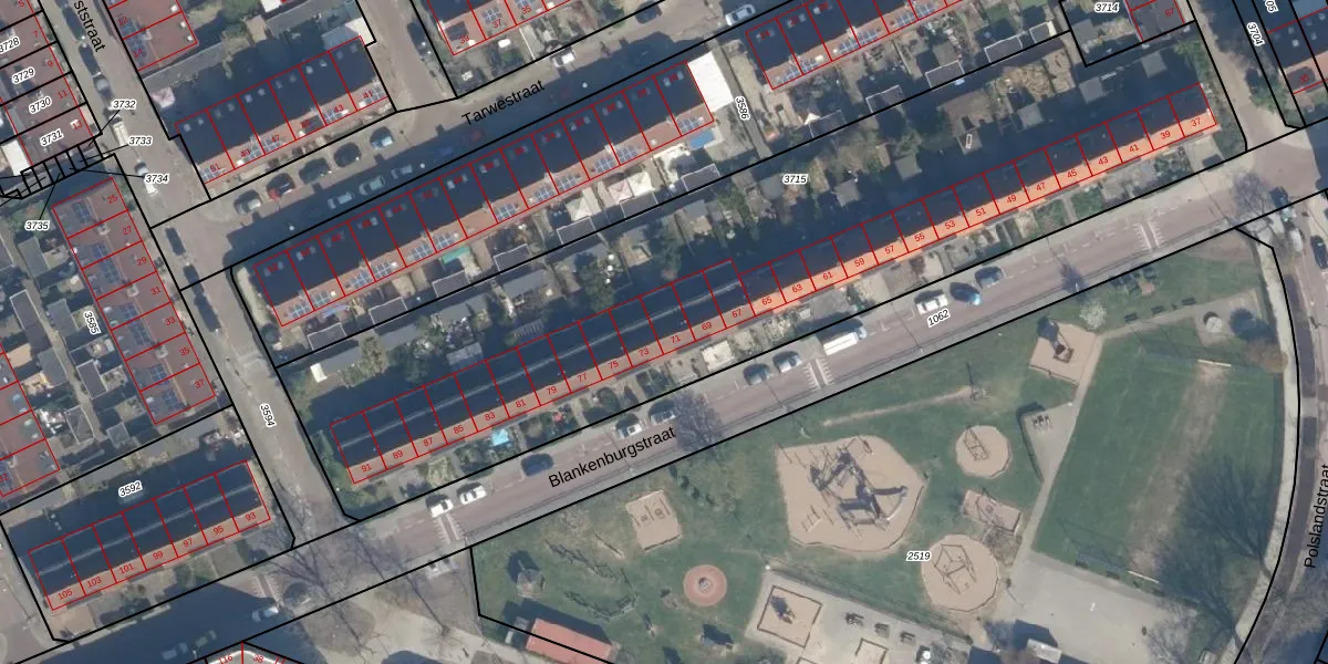 Blankenburgstraat 71 is gelegen op kadastraal perceel CLS00H3715. Deze kadastrale aanduiding is uniek en wordt gebruikt door het Kadaster om eigendomsrechten en andere zakelijke rechten vast te leggen. Het perceel maakt onderdeel uit van de kadastrale gemeente Charlois.