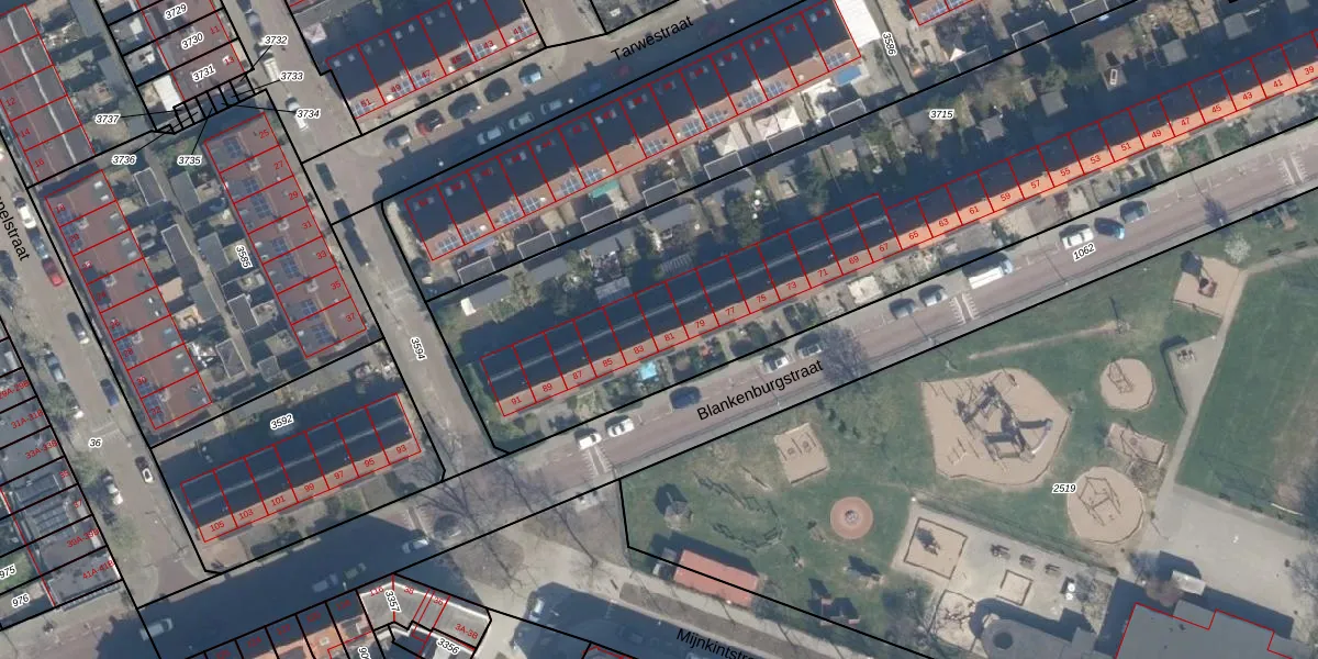 Het perceel waarop Blankenburgstraat 81 staat heeft een oppervlakte van 3789 m². Dit is een zeer groot perceel. De perceeloppervlakte wordt geregistreerd door het Kadaster. Gedetailleerde informatie over de maten van dit perceel kunt u vinden in het rapport Kadastrale kaart met maatvoering van Blankenburgstraat 81.