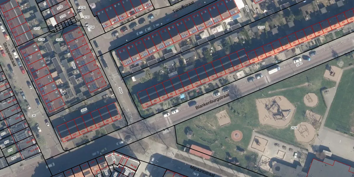 Het perceel waarop Blankenburgstraat 83 staat heeft een oppervlakte van 3789 m². Dit is een zeer groot perceel. De perceeloppervlakte wordt geregistreerd door het Kadaster. Gedetailleerde informatie over de maten van dit perceel kunt u vinden in het rapport Kadastrale kaart met maatvoering van Blankenburgstraat 83.