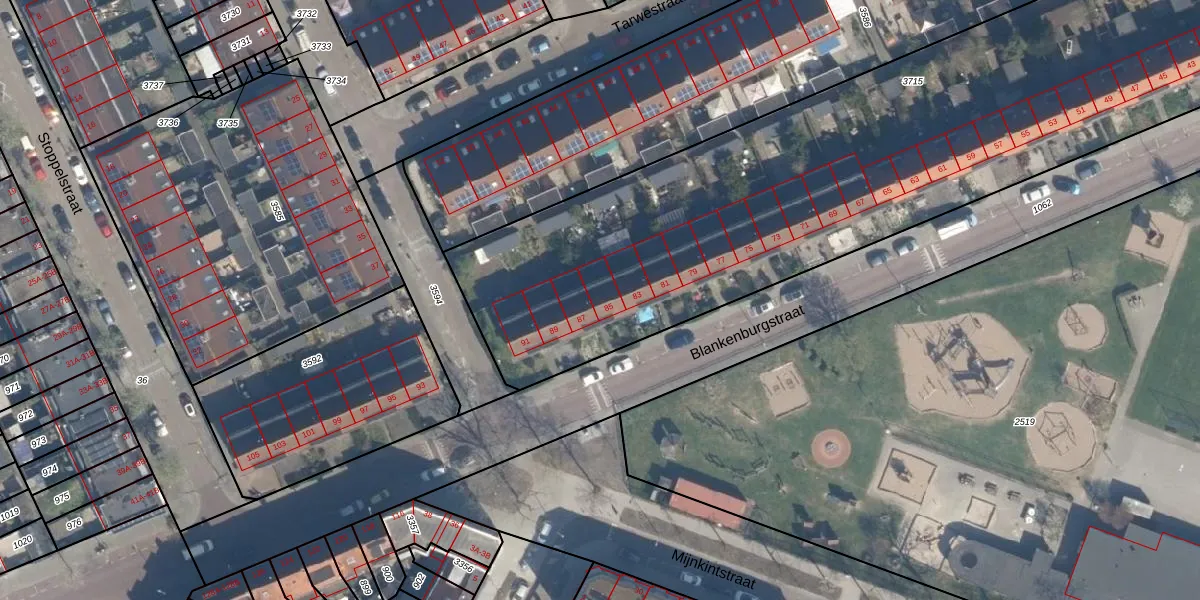 Het perceel waarop Blankenburgstraat 85 staat heeft een oppervlakte van 3789 m². Dit is een zeer groot perceel. De perceeloppervlakte wordt geregistreerd door het Kadaster. Gedetailleerde informatie over de maten van dit perceel kunt u vinden in het rapport Kadastrale kaart met maatvoering van Blankenburgstraat 85.