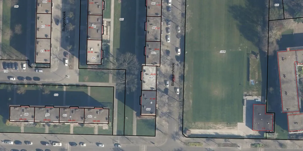 Het perceel waarop Blankershoek 43 staat heeft een oppervlakte van 166 m². Dit is een middelgroot perceel. De perceeloppervlakte wordt geregistreerd door het Kadaster. Gedetailleerde informatie over de maten van dit perceel kunt u vinden in het rapport Kadastrale kaart met maatvoering van Blankershoek 43.