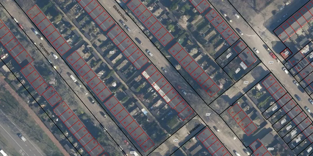 Het perceel waarop Blekerslaan 39 staat heeft een oppervlakte van 5942 m². Dit is een zeer groot perceel. De perceeloppervlakte wordt geregistreerd door het Kadaster. Gedetailleerde informatie over de maten van dit perceel kunt u vinden in het rapport Kadastrale kaart met maatvoering van Blekerslaan 39.