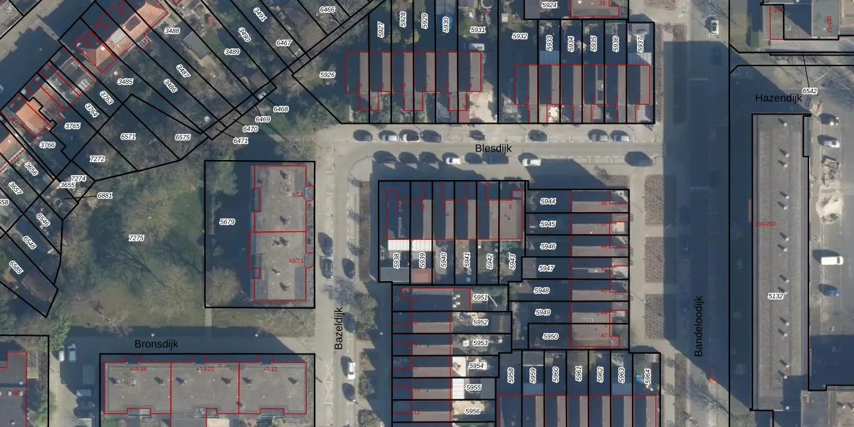 Gebruik de zoekbalk of klik op een perceel voor informatie over de adressen binnen dit perceel.