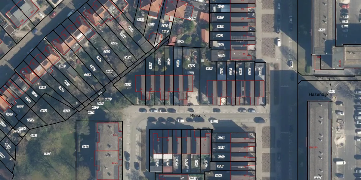 Blesdijk 15 is gelegen op kadastraal perceel ISM01B5930. Deze kadastrale aanduiding is uniek en wordt gebruikt door het Kadaster om eigendomsrechten en andere zakelijke rechten vast te leggen. Het perceel maakt onderdeel uit van de kadastrale gemeente IJsselmonde.