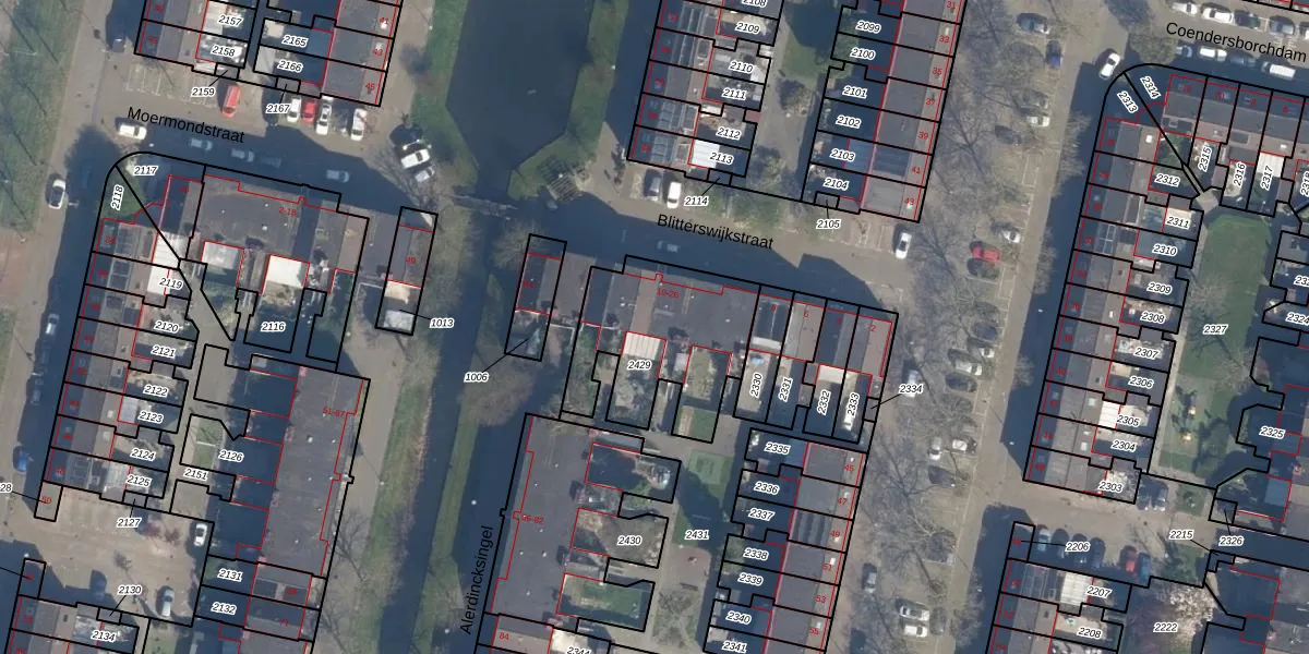 Blitterswijkstraat 18 is gelegen op kadastraal perceel ISM01F2429. Deze kadastrale aanduiding is uniek en wordt gebruikt door het Kadaster om eigendomsrechten en andere zakelijke rechten vast te leggen. Het perceel maakt onderdeel uit van de kadastrale gemeente IJsselmonde.