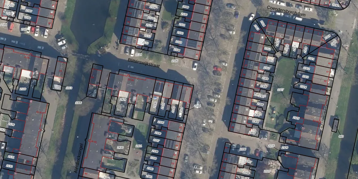 Gebruik de zoekbalk of klik op een perceel voor informatie over de adressen binnen dit perceel.