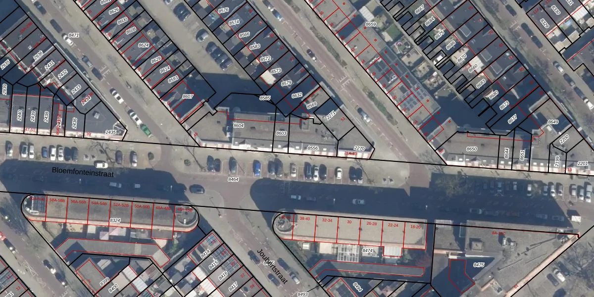Bloemfonteinstraat 25-E is gelegen op kadastraal perceel CLS00D8556. Deze kadastrale aanduiding is uniek en wordt gebruikt door het Kadaster om eigendomsrechten en andere zakelijke rechten vast te leggen. Het perceel maakt onderdeel uit van de kadastrale gemeente Charlois.
