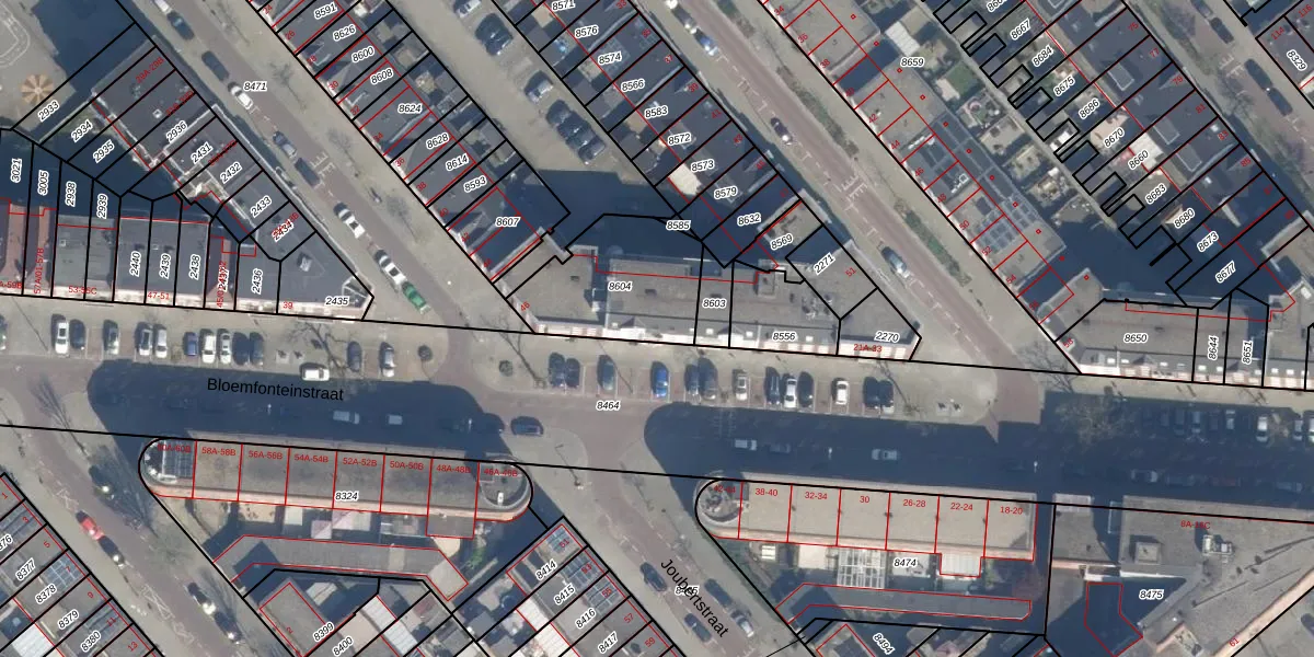 Het perceel waarop Bloemfonteinstraat 29 staat heeft een oppervlakte van 429 m². Dit is een groot perceel. De perceeloppervlakte wordt geregistreerd door het Kadaster. Gedetailleerde informatie over de maten van dit perceel kunt u vinden in het rapport Kadastrale kaart met maatvoering van Bloemfonteinstraat 29.