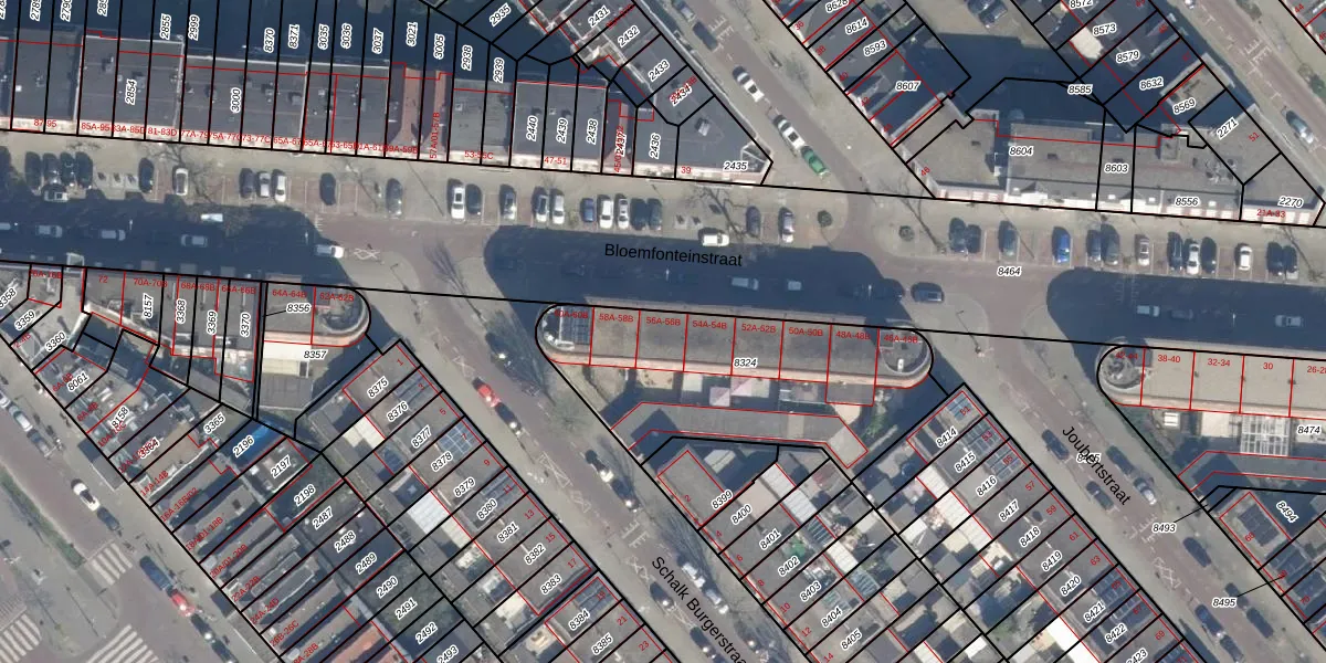 Bloemfonteinstraat 56-A is gelegen op kadastraal perceel CLS00D8324. Deze kadastrale aanduiding is uniek en wordt gebruikt door het Kadaster om eigendomsrechten en andere zakelijke rechten vast te leggen. Het perceel maakt onderdeel uit van de kadastrale gemeente Charlois.