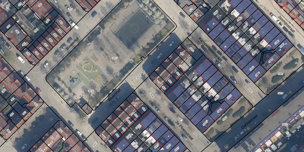 Het perceel waarop Bloemhof 12 staat heeft een oppervlakte van 90 m². Dit is een klein perceel. De perceeloppervlakte wordt geregistreerd door het Kadaster. Gedetailleerde informatie over de maten van dit perceel kunt u vinden in het rapport Kadastrale kaart met maatvoering van Bloemhof 12.
