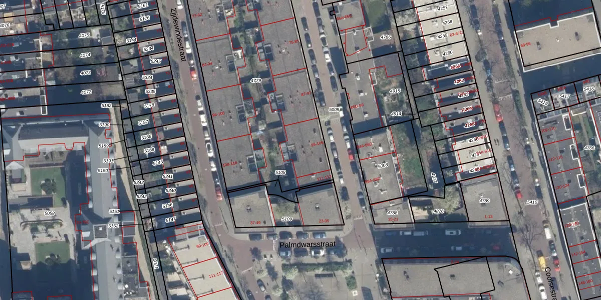 Het adres ligt op het perceel RTD06-S-4779, dat zich in de kadastrale gemeente Rotterdam bevindt. De oppervlakte van het perceel is 2971 m². Dat is groter dan gemiddeld in Rotterdam, waar de gemiddelde perceeloppervlakte op 692,84 m² ligt. De grootste perceeloppervlakte in de kadastrale gemeente is 4,7 ha. De kleinste oppervlakte bedraagt 0 m². Op het perceel zijn 64 adressen aanwezig. In de Basisregistratie Kadaster (BRK) werden de grenzen van het perceel geregistreerd op 15-11-2004.