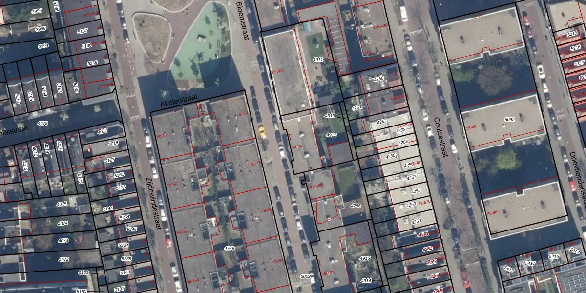 Bloemstraat 62 is gelegen op kadastraal perceel RTD06S4912. Deze kadastrale aanduiding is uniek en wordt gebruikt door het Kadaster om eigendomsrechten en andere zakelijke rechten vast te leggen. Het perceel maakt onderdeel uit van de kadastrale gemeente Rotterdam.