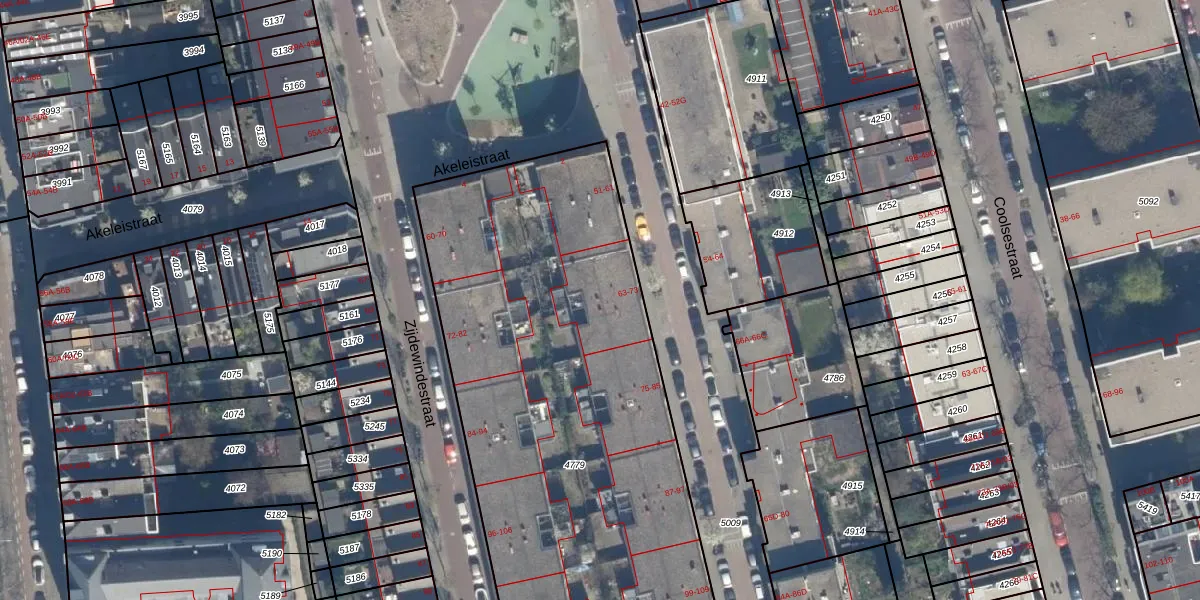 Het adres ligt op het perceel RTD06-S-4779, dat zich in de kadastrale gemeente Rotterdam bevindt. De oppervlakte van het perceel is 2971 m². Dat is groter dan gemiddeld in Rotterdam, waar de gemiddelde perceeloppervlakte op 692,84 m² ligt. De grootste perceeloppervlakte in de kadastrale gemeente is 4,7 ha. De kleinste oppervlakte bedraagt 0 m². Op het perceel zijn 64 adressen aanwezig. De huidige grenzen van het perceel zijn digitaal in de Basisregistratie Kadaster (BRK) geregistreerd op 15-11-2004.
